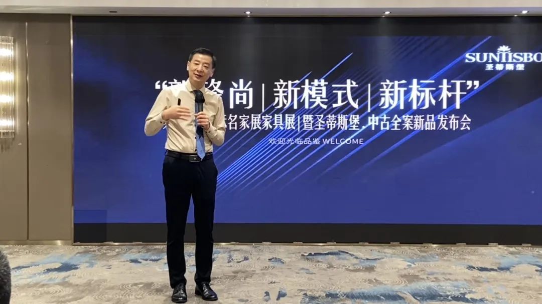 接下來,我們工業營銷部副經理吳天喜先生為我們重磅揭曉了2025春季新品中古全案系列和新古典全案升級新品,他從選材、設計、風格、工藝等方面進行了全面的講解,并提到此次中古新品的全案模式是以更具設計感的創新方式,給予消費者整體性的體驗感升級,助力大家在激烈的市場競爭中,突顯差異化的優勢,實現業績的飛躍式增長。