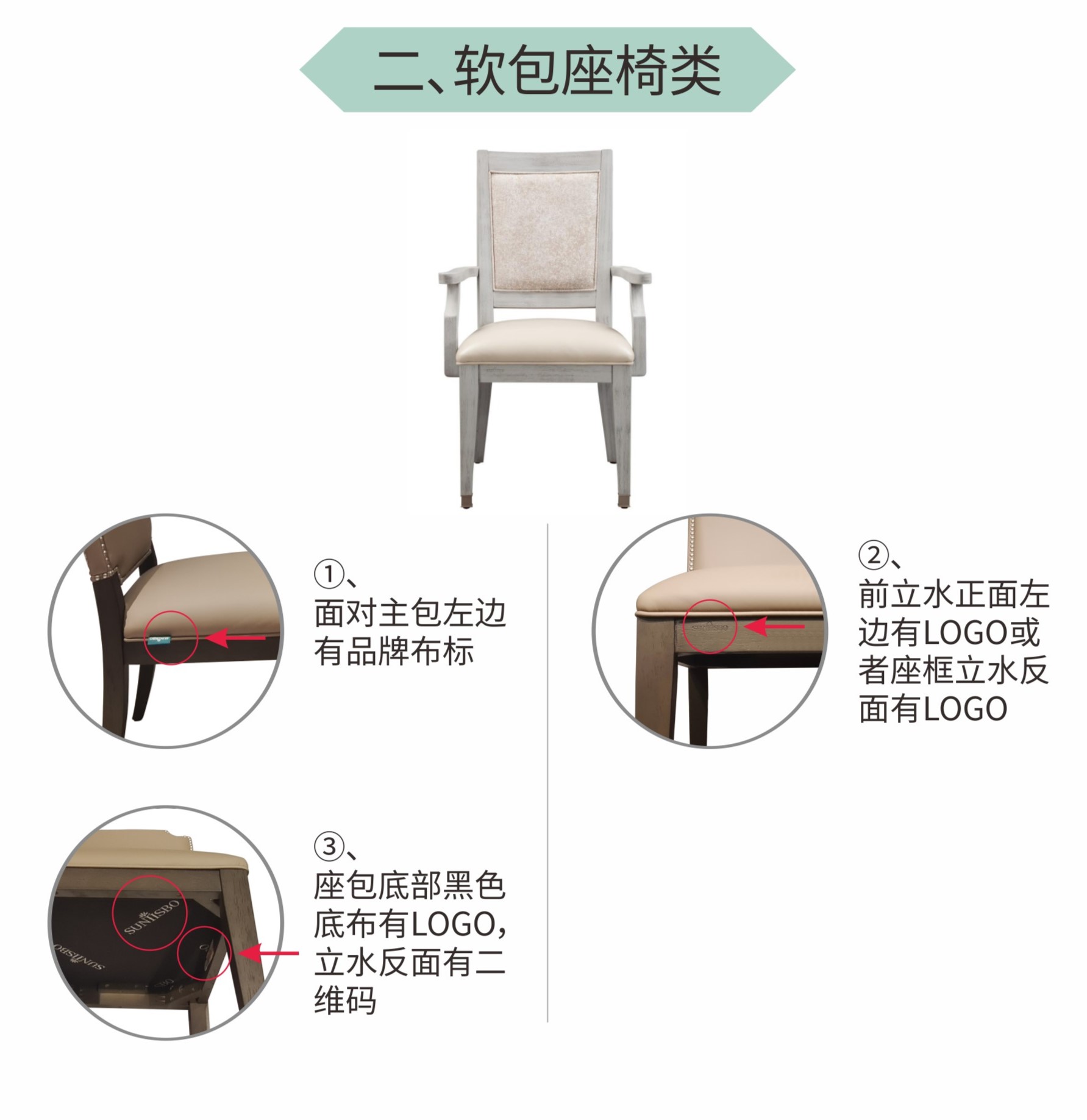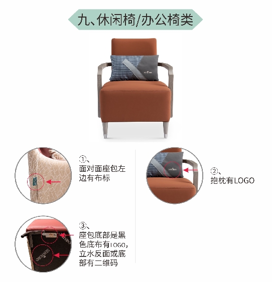 (1)產(chǎn)品扶手處有品牌布標(biāo);