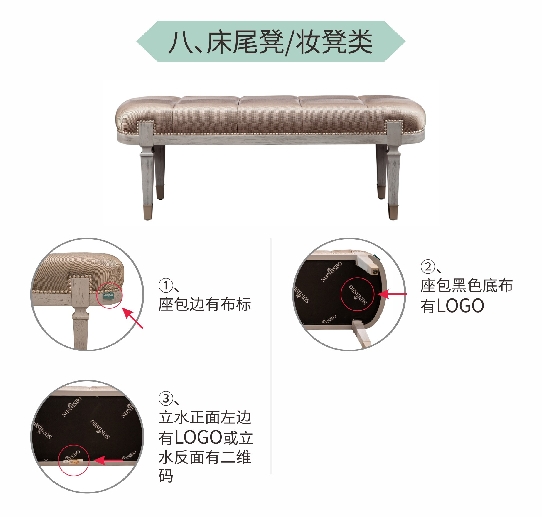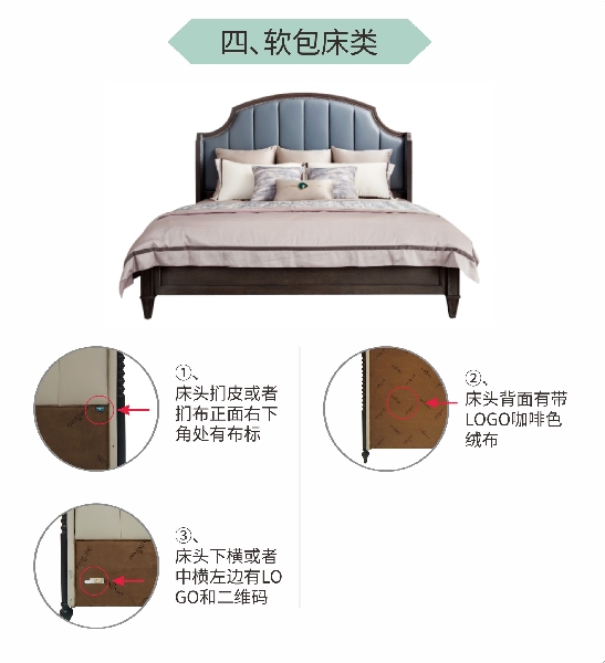 (1)床頭捫皮或者捫布正面右下角處有布標(biāo);